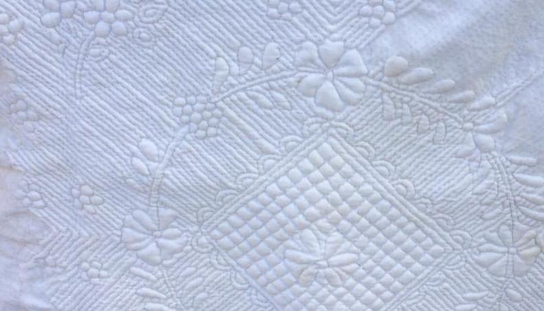 Boutis unterscheidet sich von herkömmlichen Quilts dadurch, dass es hier keine Vlieslage gibt. Stattdessen werden die gequilteten Stofflagen mit Wolle eingezogen und gefüllt. Dadurch ergibt sich ein Stichbild, dass eine ganz besondere Transparenz aufweist. Es stammt aus der Provence wo seit dem 16. Jahrhundert mit zartem Baumwollbatist, Wolle und Faden wunderschöne Kleidung, Tischdecken und Babykleidung entstanden. Heute ist diese Kunst in vielen Teilen fast schon vergessen, aber bei uns nicht!